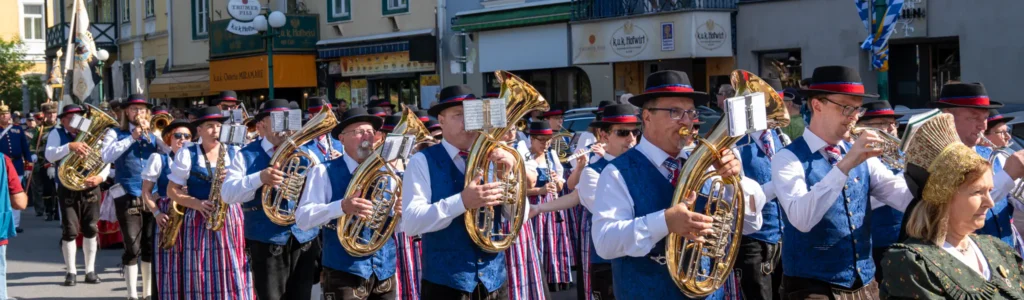 65 MusikerInnen, 65 Geschichten – zusammen vereint in der Stadtkapelle Melk. Unsere Jüngste ist gerade einmal 12 Jahre alt, während unser erfahrener Schlagzeuger seit über 50 Jahren das Tempo vorgibt. Gemeinsam teilen wir nicht nur die Leidenschaft für die Blasmusik, sondern auch jede Menge Humor: Wer zählt wohl mehr, die Noten auf dem Papier oder die Pausen bei der Probe? Eins ist sicher – bei uns spielt jede*r eine wichtige Rolle!