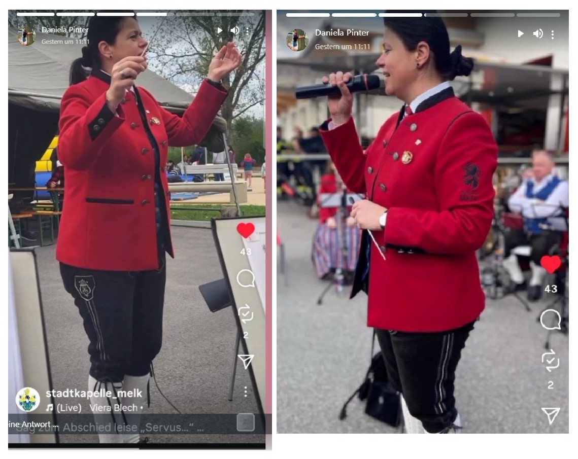 Nicht leise, sondern mit den letzten Takten des großen Österreichischen Zapfenstreichs, hat unsere Kapellmeisterin Daniela Pinter am vergangen Sonntag nach 7 Jahren den Dirigentenstab niedergelegt.