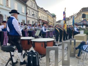 Nach dem anschließenden Platzkonzert im Prälatenhof marschierten wir mit unseren Gästen in die Kulturwerkstatt „Tischlerei“ Melk zum Frühschoppen.