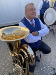 Unter anderen, der Chef des Pfarrfestes persönlich, Pater Stephan mit seinem Lieblingsmarsch,